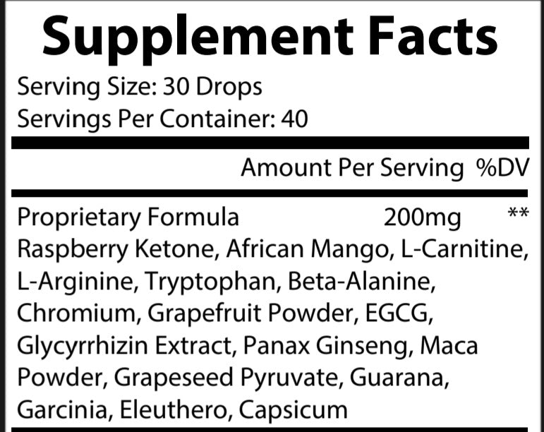 Serving Size: 30 Drops;Servings Per Bottle: 40;Bottle Color: Amber;Bottle Size: 2 oz (60 ml);Lid Color: Black