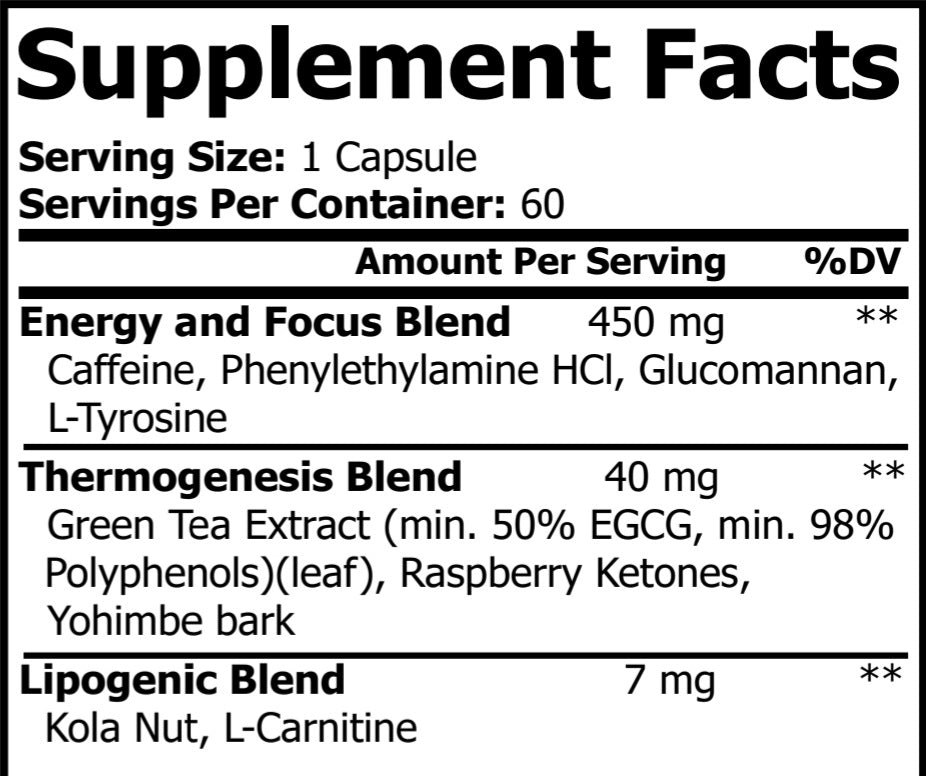 Directions: As a dietary supplement take one (1) capsule in the morning. Do not exceed two (2) capsules in a 24-hour period. Do not take past 4 PM. Use for no longer than 8 weeks straight, followed by an off period of at least 2 weeks
